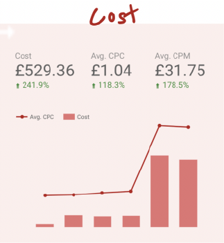 Within the same timeframe, the Cost Per Conversion saw a positive change from £176.45 to £41.58.